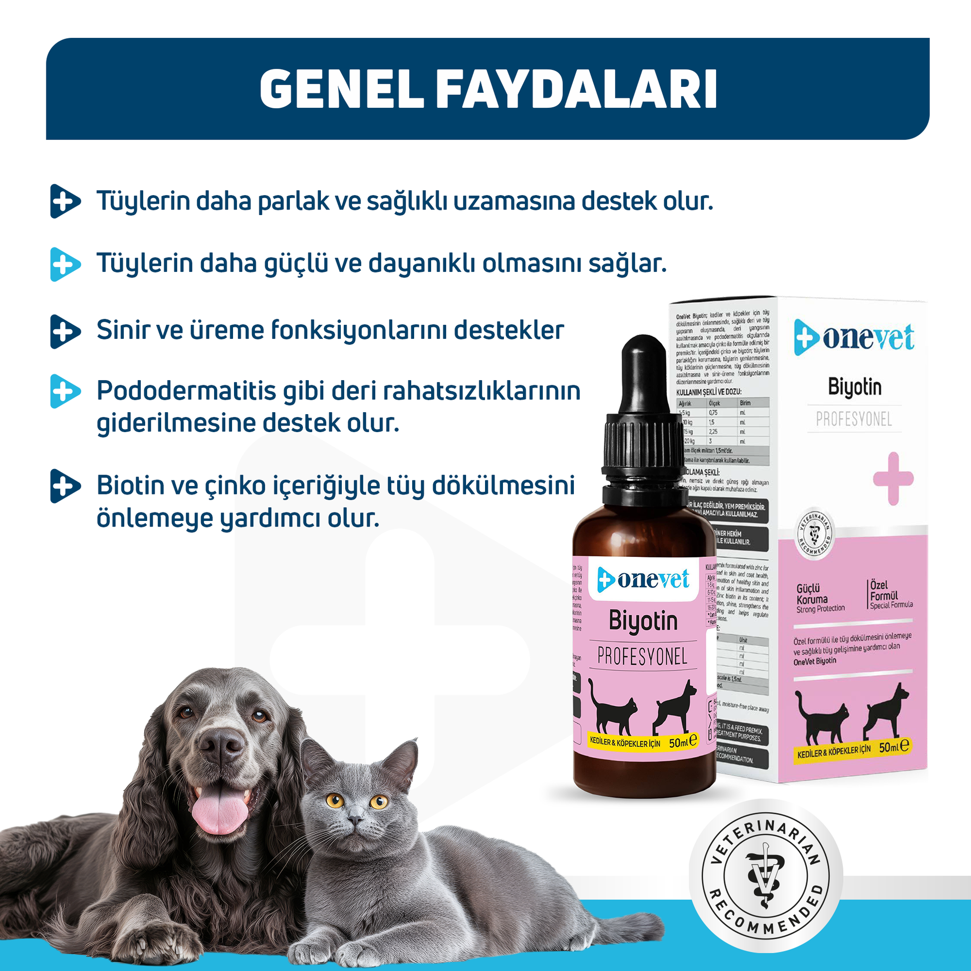 Evcil hayvanınızın deri ve tüy sağlığını korumak için OneVet Biotin’i deneyin ve sağlıklı, parlak tüylerin keyfini çıkarın
