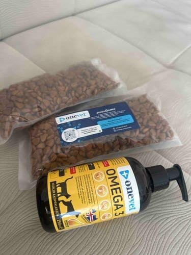 OneVet Omega 3, özel formülü ile kedilerin ve köpeklerin iştahlarını arttırmaya, mamalarını lezzetlendirmeye yardımcı olur. Esansiyel doymamış yağ asidi ihtiyacını karşılamak için üretilmiş olan bu ürün, kedilerin ve köpeklerin tüylerinin canlı ve parlak görünmesini sağlar.