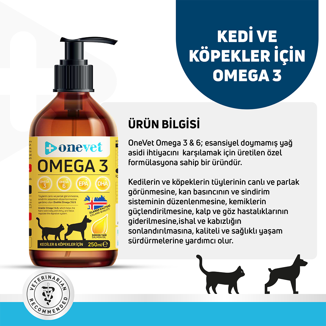 OneVet Omega 3 Kedi ve Köpekler İçin Deri ve Tüy Sağlığı Destekleyici Balık Yağı 250 ml