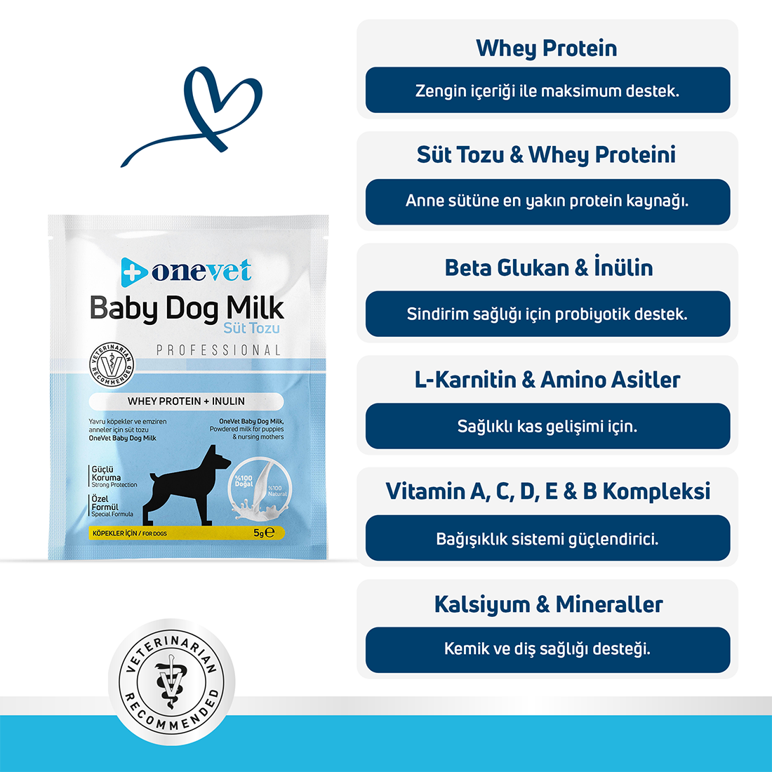 OneVet Baby Dog Milk Sindirim ve Büyüme Destekleyici Yavru ve Anne Köpek Süt Tozu