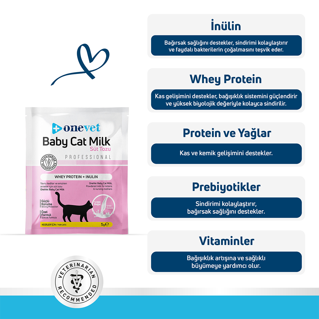 OneVet Baby Cat Milk Sindirim ve Büyüme Destekleyici Yavru ve Anne Kedi Süt Tozu
